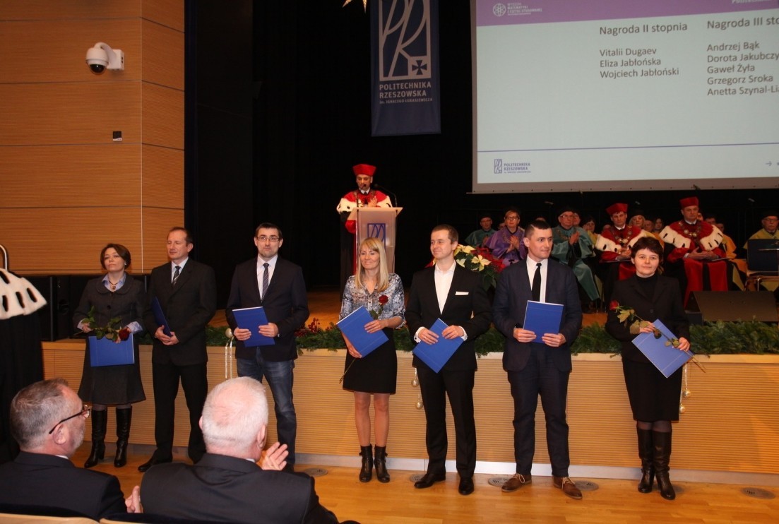 Jak co roku o tej porze, 15 grudnia br. na Politechnice Rzeszowskiej odbyło się uroczyste posiedzenie Senatu Politechniki Rzeszowskiej, podczas którego JM Rektor przyznał nauczycielom akademickim Nagrody Rektora za osiągnięcia naukowe, dydaktyczne i organizacyjne. Miło nam poinformować, że wśród nagrodzonych osób znaleźli się również pracownicy Zakładu Matematyki Dyskretnej: