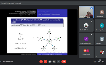 W dniu 19 stycznia 2023 dr hab. Iwona Włoch, prof. PRz wygłosiła referat „Zbiory (1,2)-dominujące w grafach i ich produktach”, którego współautorem był mgr Adrian Michalski...
